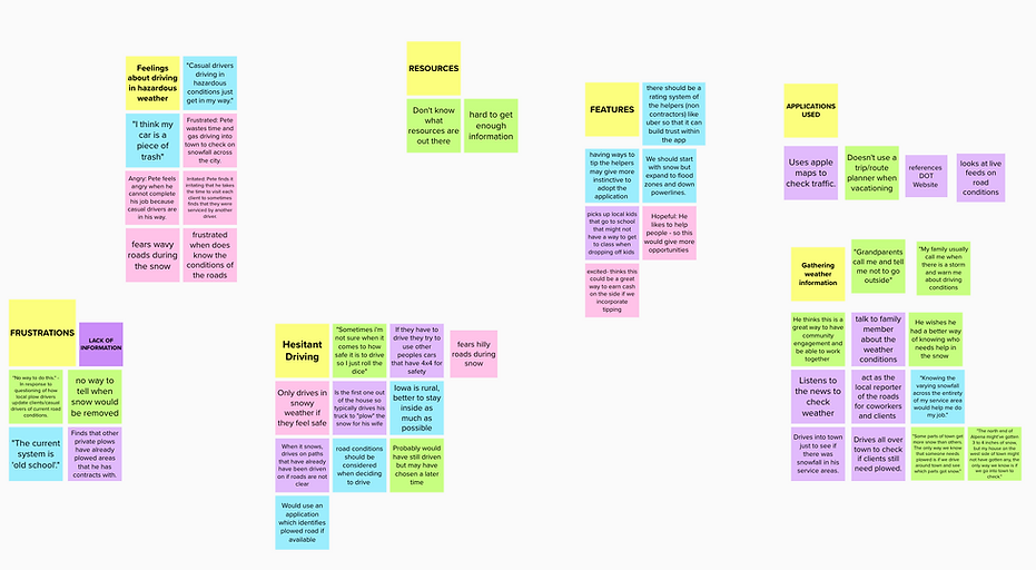 Seven virtual interviews and an online survey questionnaire were created to generate knowledge about our users, their experiences driving in the snow, and their pain points.